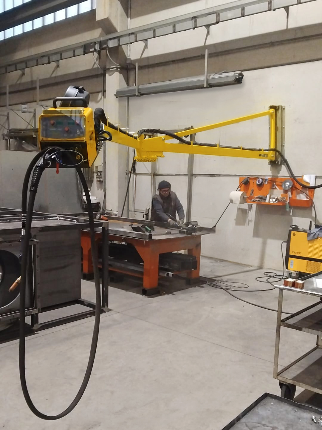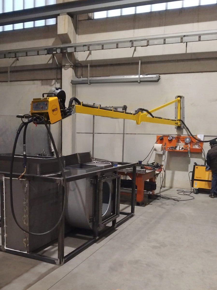 O Alimentador de Arame Pivotante Montado na Parede agiliza as operações em grandes instalações de fabricação, eliminando os engorrosos traslados de equipamentos e melhorando a mobilidade do soldador.